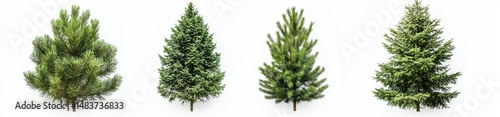Top down aerial view of four green shrubs or tree tops with lush foliage used for landscaping environment and garden design