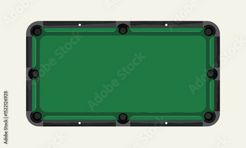 Top Down Vector Illustration of Minimalist Pool Table with Emerald Green Felt and Dark Wood Frame