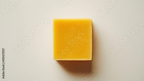 top down view, the image depicts a serene, minimalist setting with a soap placed in the center of a white background
