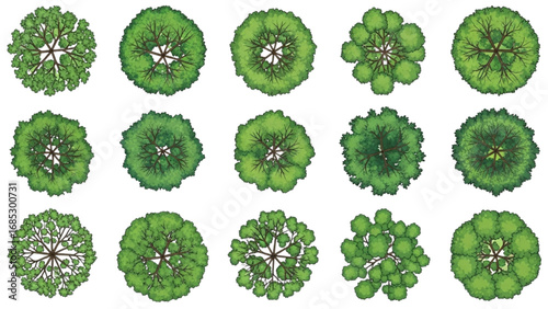 Top View Green Trees Set | Botanical Elements for Outdoor Plan, Garden, and Architectural Drawing