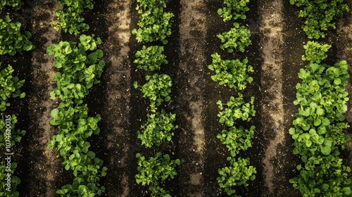 Top view greenery in a vibrant vegetable farm landscape