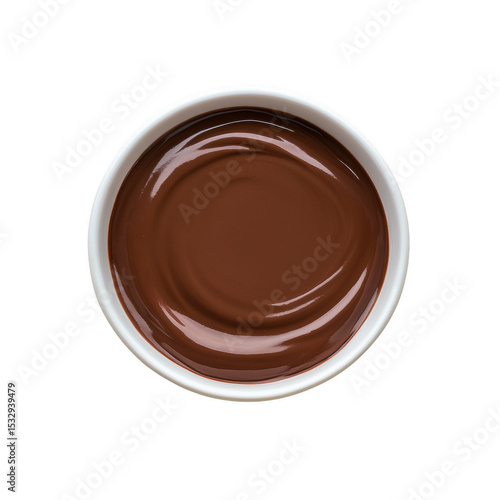 Top view of a bowl filled with creamy chocolate sauce, smooth and rich in texture.