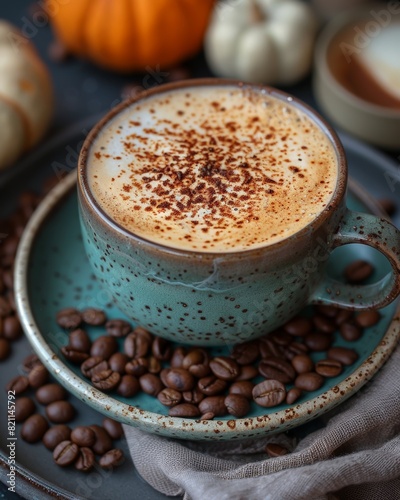 Top view of a cup of coffee latte in a plate