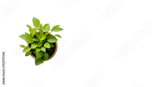Top view of a potted plant with green leaves for home decor and gardening on transparent background