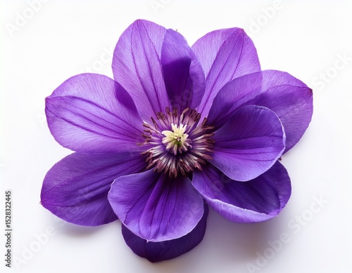 top view of a violet flower isolated on a white background showcasing its delicate petals and vibrant color with sharp clarity and detail