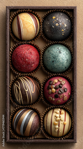 Top View of Assorted Chocolate Truffles in Box for Valentine's Day