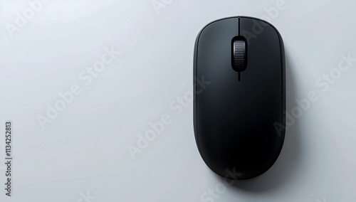 "Top View of Black Wireless Mouse Isolated on White Background"