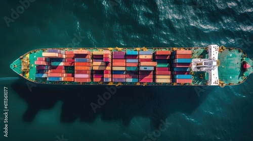 Top view of Container cargo ship in sea. Cargo Ship. Generative ai