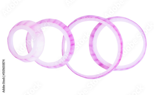 Top view of fresh red or purple onion rings or slices in stack isolated on white background with clipping path