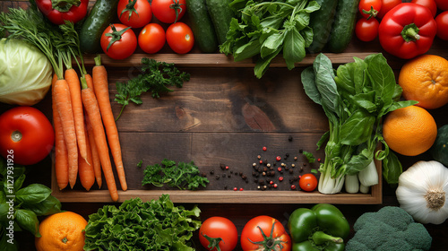 Top View of Fresh Vegetables, Spices, and Fruits Surrounding Empty Space on a Table – Healthy Food Concept, Copy Space