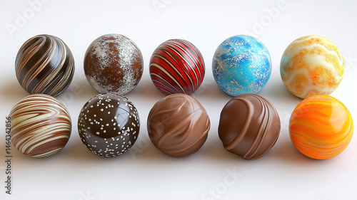 Top view of gourmet chocolate truffles styled beautifully for high end food presentation