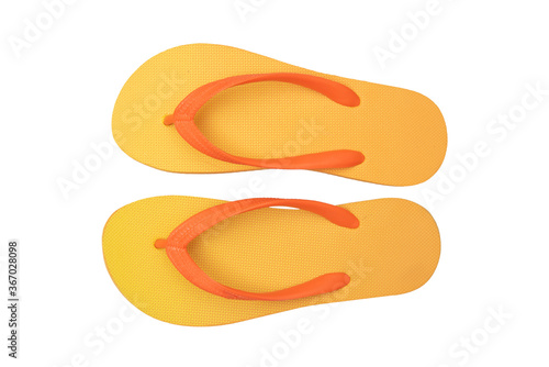 top view of orange flip flops on white back ground