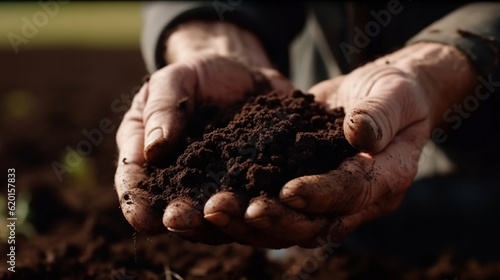Top view of soil in hands for check the quality of the soil for control soil quality before seed plant. Future agriculture concept. Smart farming, using modern technologies , Generative Ai