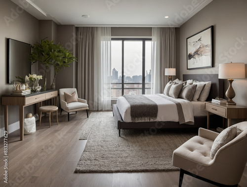 Top View of Stylish Cozy Bedroom with Modern Decor
