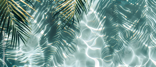 Top view of Transparent Shadow Overlay Effect. Palm Leaves, Water Ripples and Sunlight Reflections on transparent Background. Ideal for Product Placement.