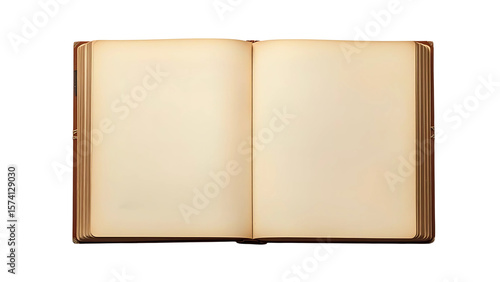 Top View Open Antique Book with Blank Pages - Vintage Knowledge and Storytelling - Historical Mockup Isolated transparent background