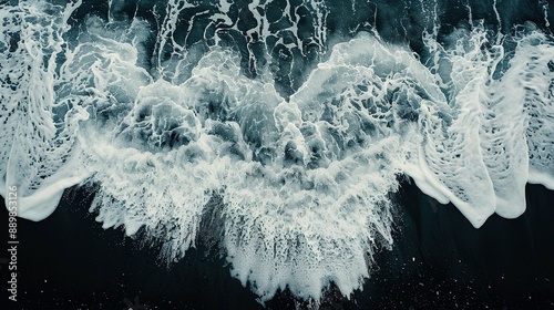 Top View Perspective of a Clear Sea: Waves and Foam on Dark Sand Beach