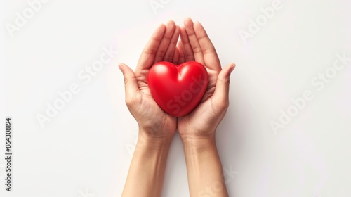 Top view photo of hands holding red heart on black background, healthcare, love, organ donation, mindfulness, wellbeing, family insurance and CSR concept, World Heart Day