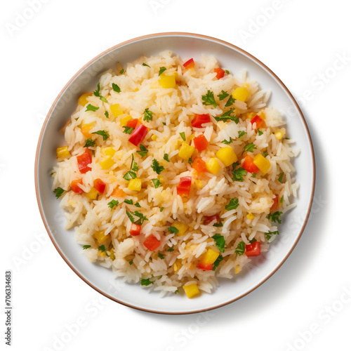 top view photography of a plate of fried rice isolated on a transparent background created with Generative Ai