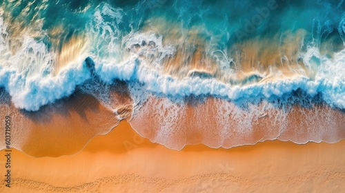 Top view sea on beach,Ocean beach with soft waves,AI generated.