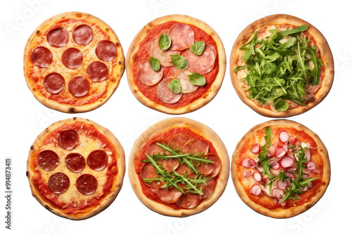 Top View to a Pizza Collection PNG isolated on white and transparent background - Margherita Pepperoni Pizzeria Menu Restaurant Banner Advertising