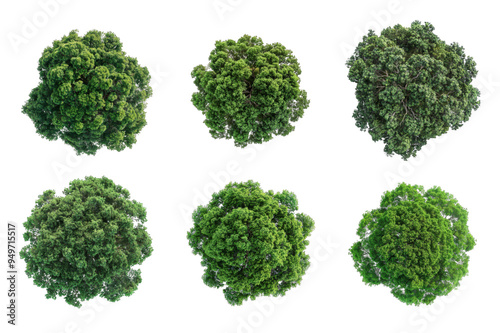 Top View Tree Collection Bundle Set Isolated on a Transparent Background