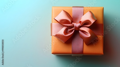 Top-Down Shot of a Wrapped Gift Box with Bow