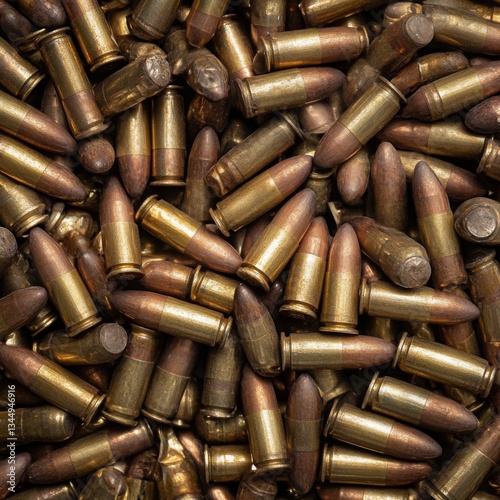 Top-down view of a background filled with 9mm bullets
