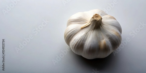 Top-down view of a single garlic bulb , garlic, spice, isolated, ingredient, white background, food, close-up, fresh
