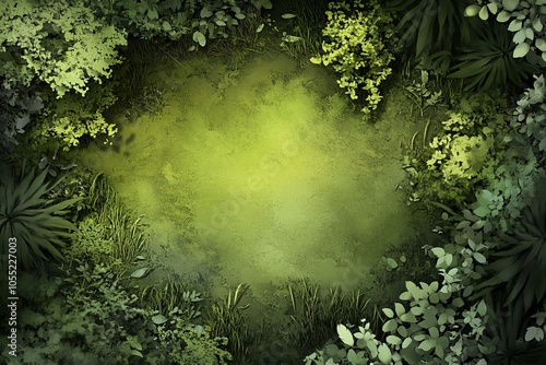 Top-down view of a swamp with a mossy ground,