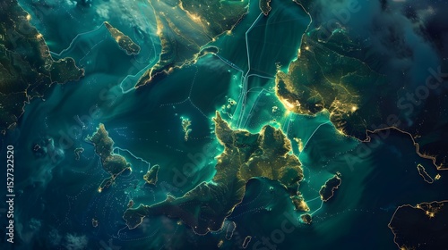 top-down view of Earth from space with glowing circuit patterns spreading over continents, digital future concept