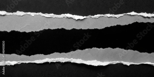 Torn black and white paper strips on dark background