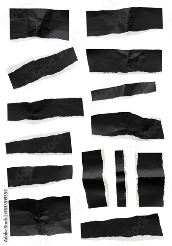 Torn Black Paper Pieces Isolated On Transparent Background Photo