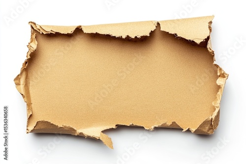 Torn cardboard isolated on a white background, flat lay. Golden ripped paper with a shadow.