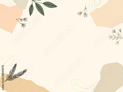 Torn paper collage with plant accents, soft and neutral shades for a modern aesthetic