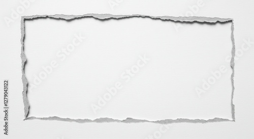 torn paper, ripped edges, blank sheet, grayscale, textured surface, minimal, abstract, empty space, rough border, monochrome, isolated on white background