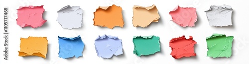 Torn paper sheets and colorful notebook pages with irregular edges. Blank memo notes and daily planner empty notepad sections, both checkered and plain, isolated on a transparent background, a