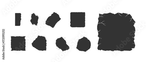 Torn paper silhouettes in sharp black design set perfect for creative borders, textures and abstract effects