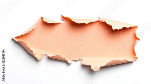 Torn Peach Paper Frame - A piece of peach-colored paper with a torn, irregular shape, creating a frame-like effect on a white background. Ideal for adding text or images.