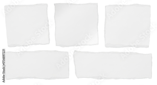 Torn sheets white paper isolated, transparent background document set mockup