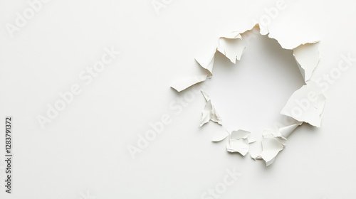 Torn White Paper Hole on Flat Surface for Creative Background Design