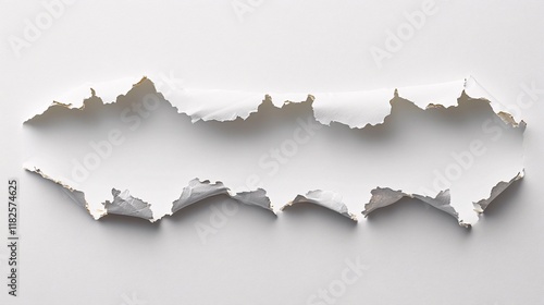 Torn white paper with jagged edges forms an abstract landscape on light background