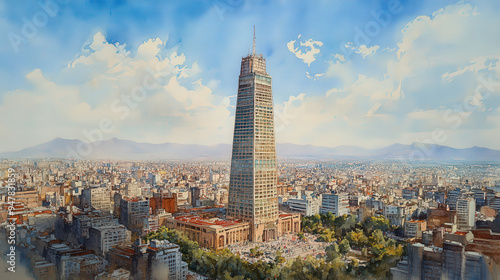 Torre Latinoamericana, Mexico City, sharp watercolor image, no shadow, clean finish.