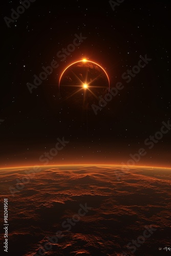 Total Solar Eclipse from Space, Glowing Ring of Light, Celestial Event, Cosmic Spectacle