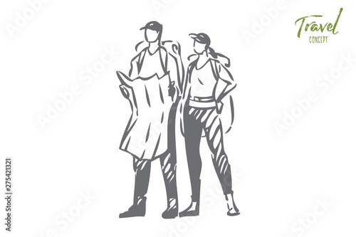 Tourism concept sketch. Isolated vector illustration