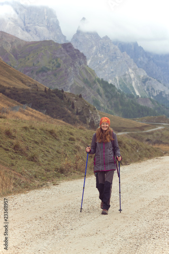 tourist girl at the Dolomites