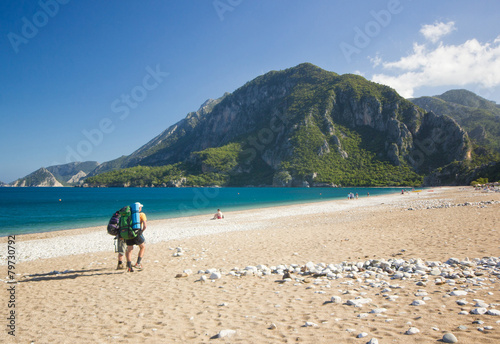 tourist walking on a sandy beach in turkey