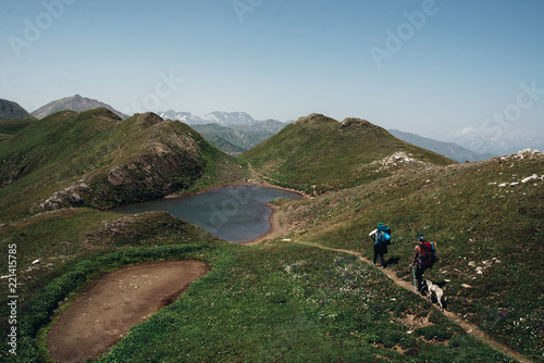 Tourists at the mountain lake