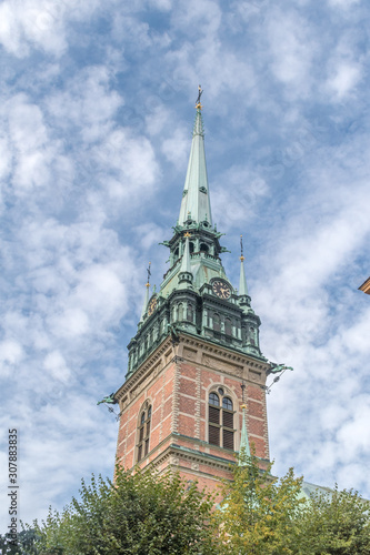 Tower of German Church sometimes called St. Gertrude's Church in Stockholm, Sweden.