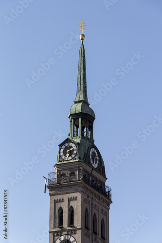 Tower of the St. Peter Church in Munich, Germany, 2015